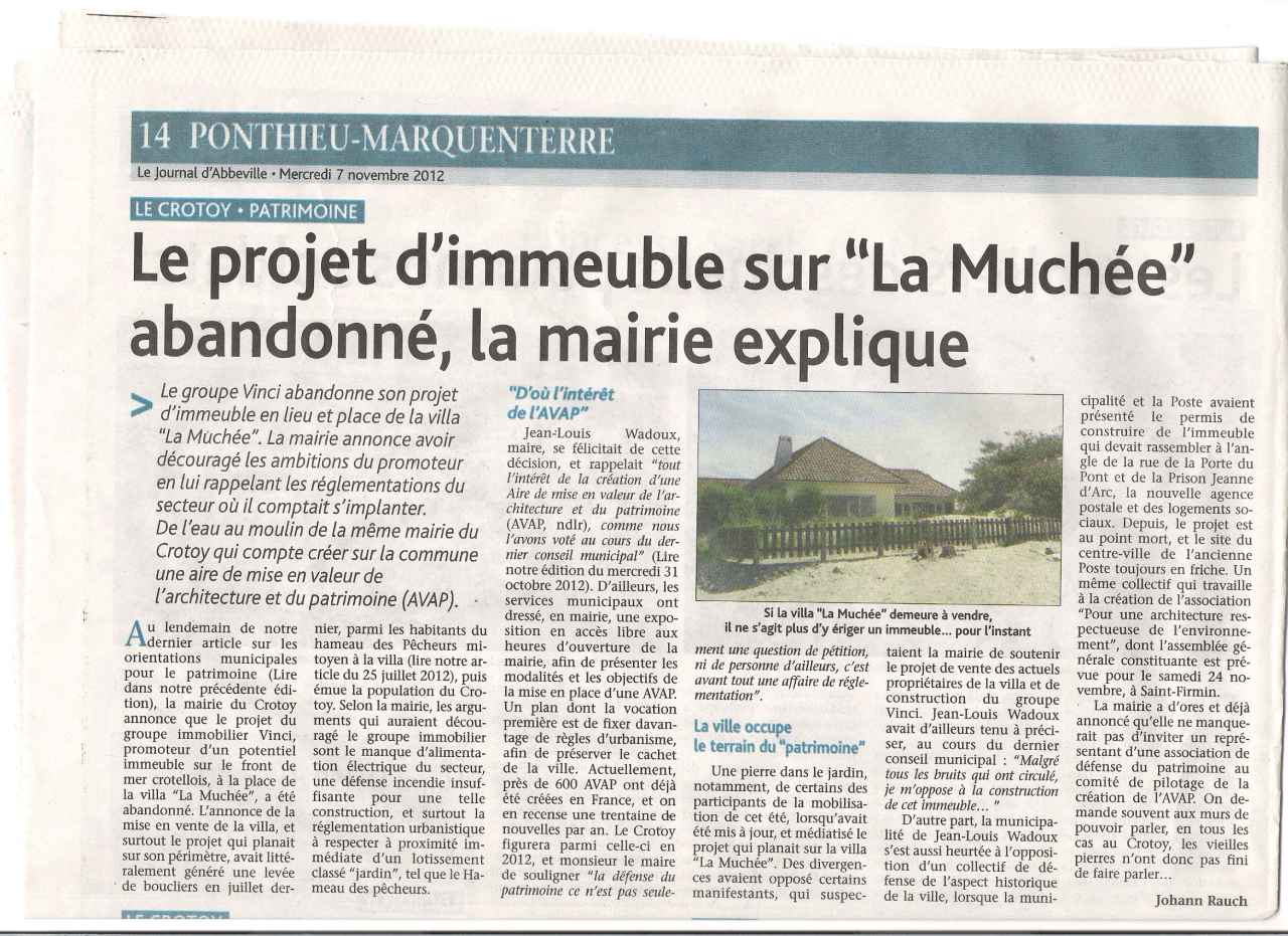 Le bureau de LCPA demandera prochainement un rendez-vous à Madame BOURGAU pour présenter notre association LCPA et évoquer ce dossier sensible d'urbanisme au Crotoy.