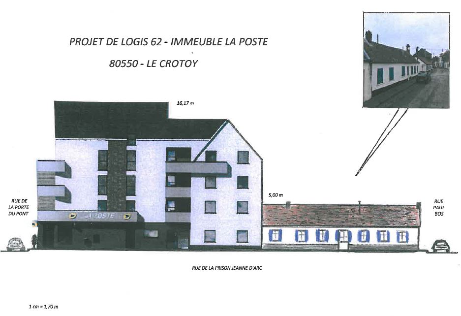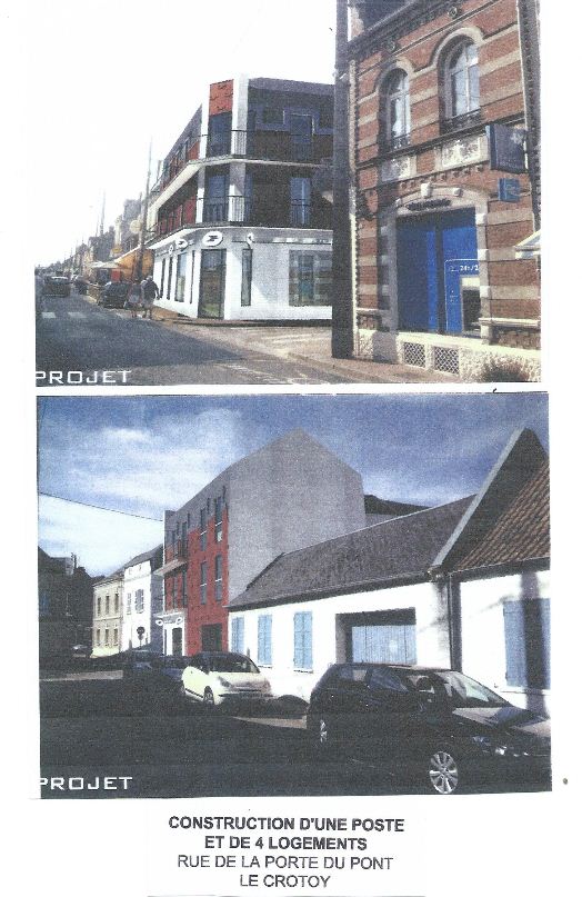 Le combat de notre association LCPA et de nombreux Crotellois pour ne pas avoir un bâtiment hors d'échelle qui défigurerait Le Crotoy prend un autre tournant puisque POSTE IMMO nous a envoyé un courrier qui mentionne que LA POSTE abandonne le projet actuel de LOGIS 62, rue de la Porte du Pont.